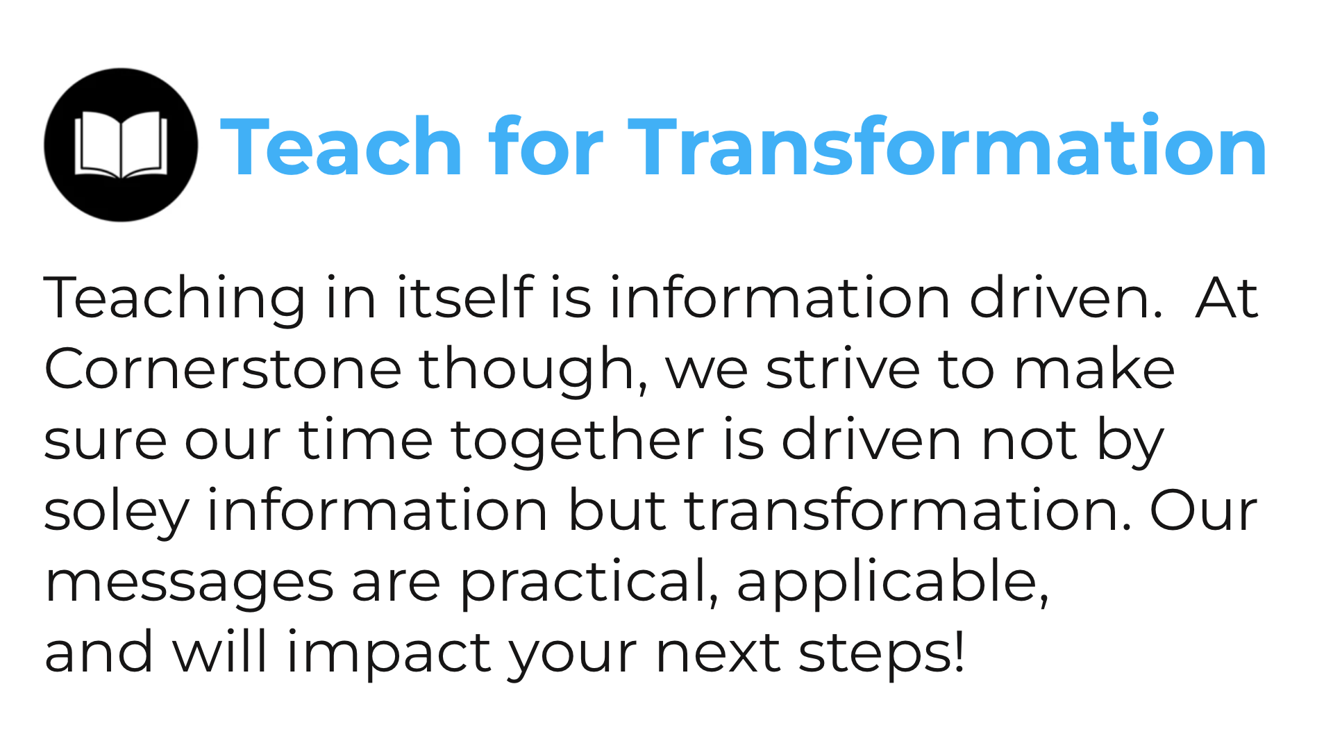The following are the core beliefs of Cornerstone Church based on the foundational truths taught in the bible. All of our teaching and ministry is rooted in and flows out of these biblical doctrines.
