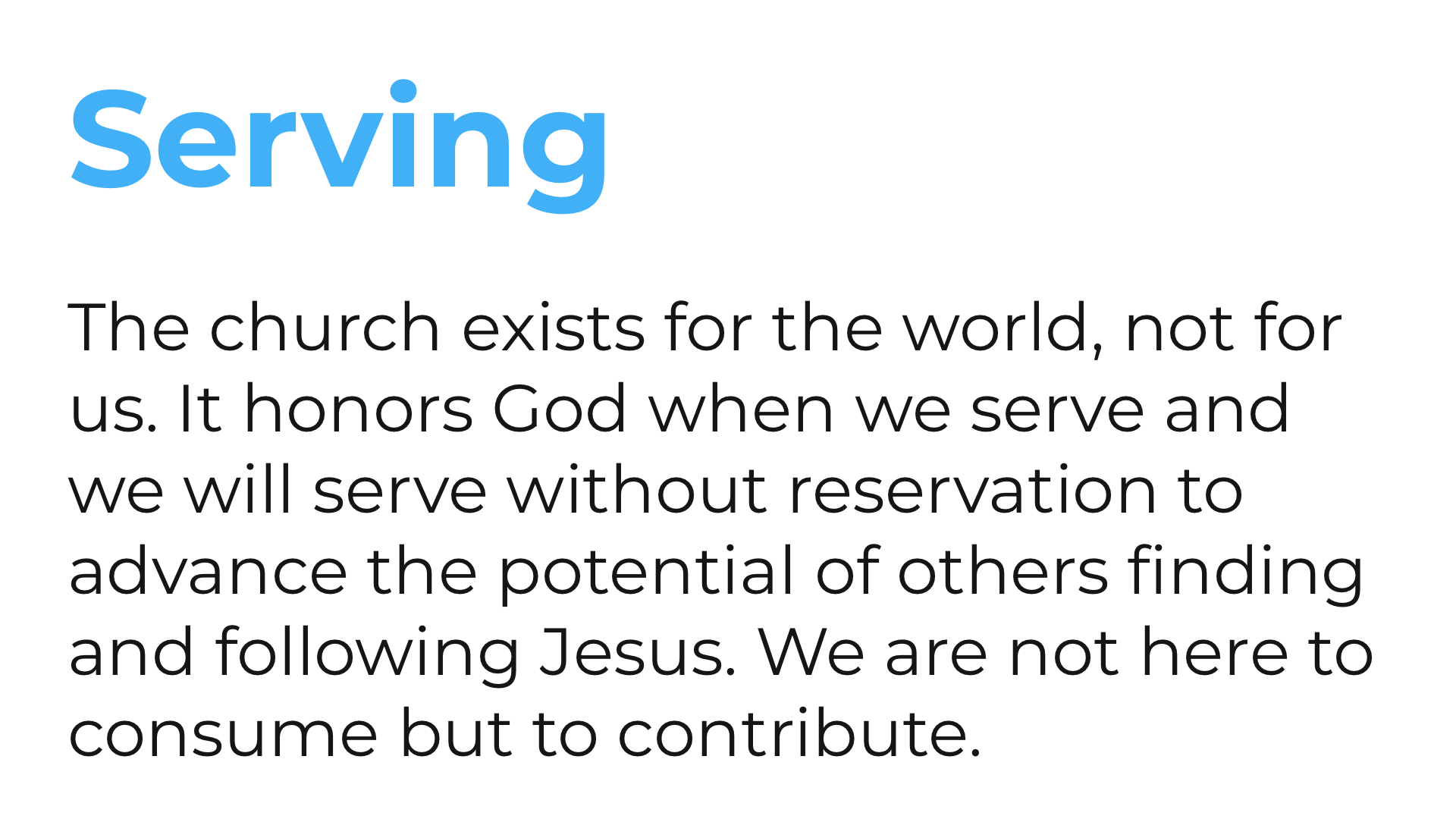 We believe the church represents Jesus Christ to a needy world. The Bible speaks of the church as Christ’s body. It compares it to a living organism, where Jesus is the head. God arranges the parts of the body (Christ-followers) just as he wants them to be. He gives each Christ-follower special functions to perform for the good of the body. To remain healthy, the body’s members must work together. Each part contributes to the growth and maturity of the body. God works through the church to reconcile a lost world to himself through Jesus Christ. For this reason, it is important for Christ-followers to regularly gather together for the purpose of celebration. During the celebration, Christ-followers are equipped, built up, and encouraged through teaching, fellowship, prayer, and communion. Celebration in this way enables believers to serve one another and the unchurched people in their sphere of influence.